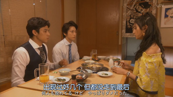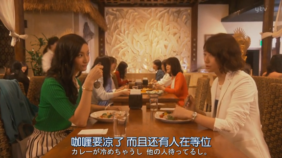 這裡兩人吃飯時三惠穿著貼身亮綠色的針織上衣搭配白色直條紋的裙子(應該吧...)